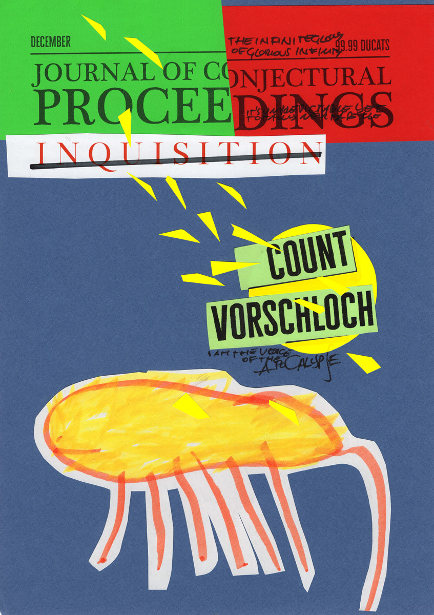This work is a part of the Project E&T series. Project E&T is a collaboration between my 5-year-old son Elliott and me: he provides the passionate scribblings, and I cut them up, create collages, and add absurdist poetry.